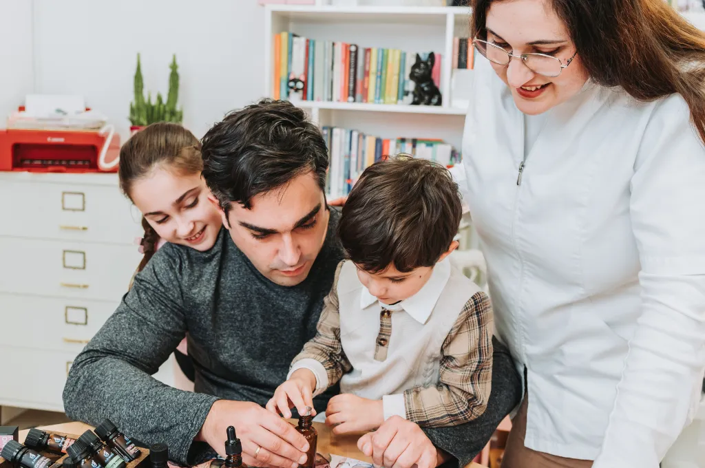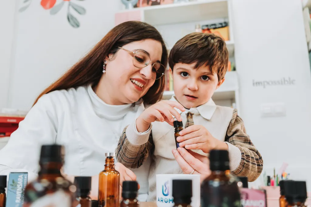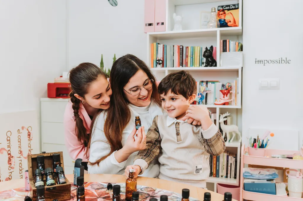 Años después, al convertirse en madre, esa conexión tomó un nuevo sentido. Quería cuidar de sus hijos de la forma más natural posible, y recordó aquellos aceites que tanto le habían acompañado. Empezó a investigar, a probar mezclas suaves y seguras, y poco a poco fue descubriendo el verdadero potencial de la aromaterapia: no solo como alivio físico, sino como herramienta de bienestar para toda la familia.